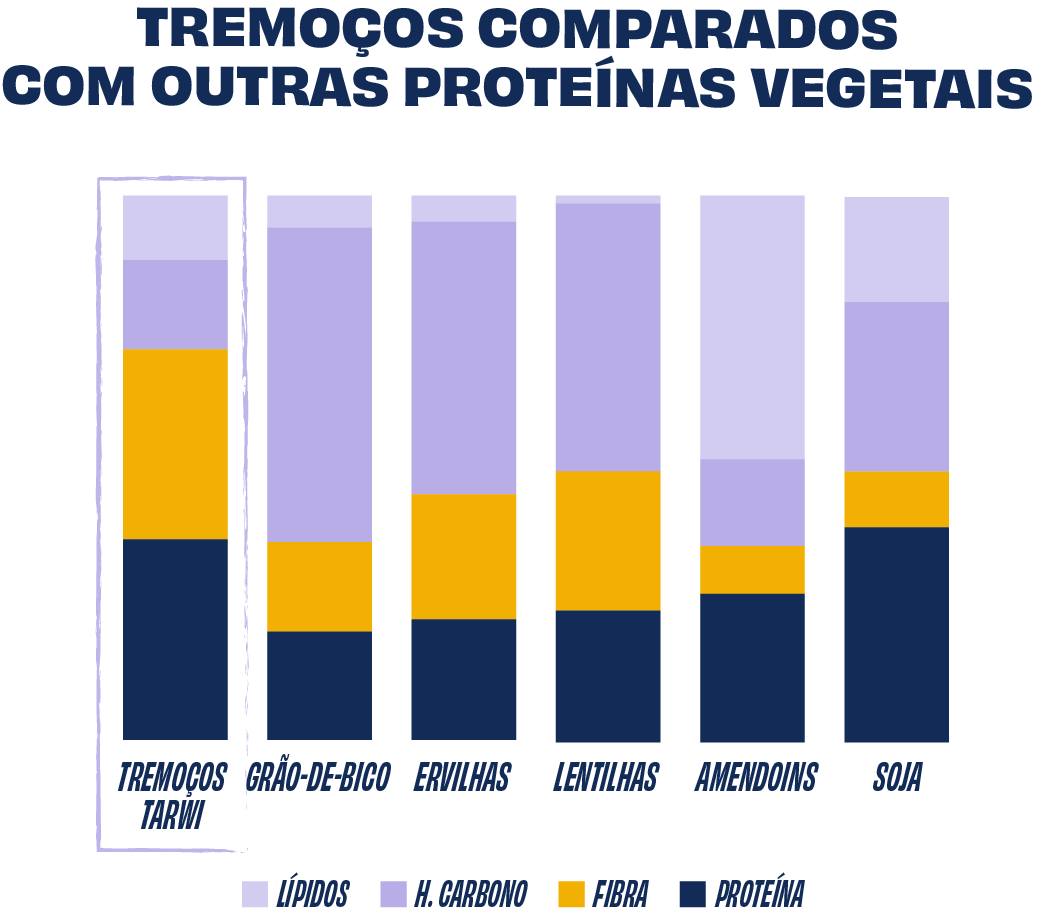 Comparado com outras opções, o tremoço Tarwi é bastante especial. Com mais proteína e fibra que as alternativas habituais, tremoço é o ingrediente que precisavas para tornar as tuas refeições plant-based ainda melhores 💥