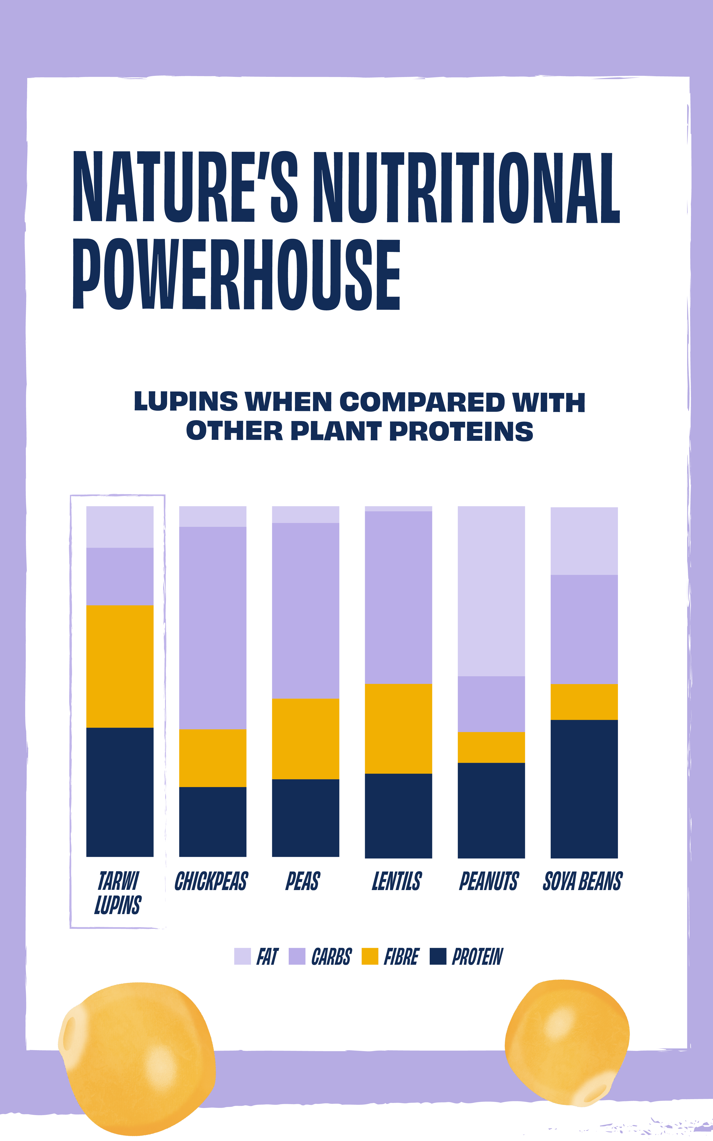 But more than a beer snack, lupins are one of the world's richest natural sources of combined protein & fibre.