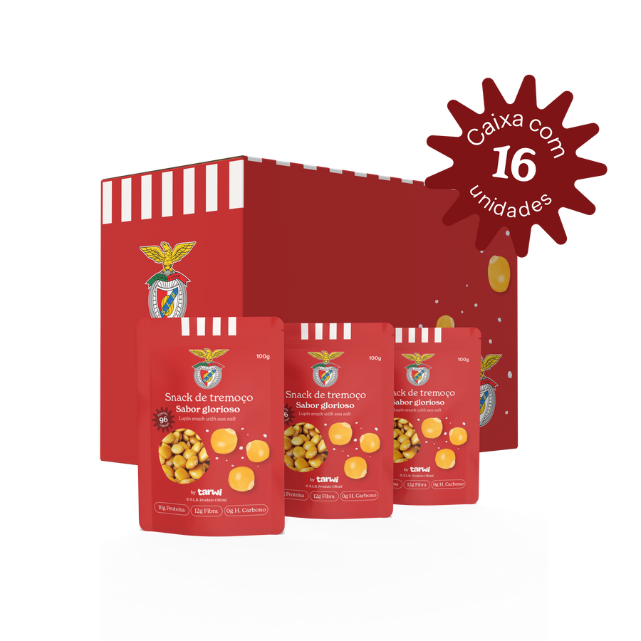 Pré-venda disponível. Os teus Snacks de tremoço SLB vão estar disponíveis para entrega entre 7 e 10 de Abril.